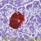 "Insulin is a 51-amino acid polypeptide composed of A and B chains connected through the C-peptide. Proinsulin, which has very little biological activity, is cleaved by proteases within its cell of origin into the insulin molecule and the C-terminal basic residue. Insulin enhances membrane transport of glucose, amino acids, and certain ions. It also promotes glycogen storage, formation of triglycerides, and synthesis of proteins and nucleic acids. The main storage site for insulin is the pancreatic islets. Antibodies to insulin are important as β-cell of islets of Langerhans and tumor (insulinoma) marker."