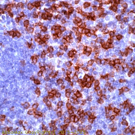 suppressor/cytotoxic T lymphocytes and majority of thymocytes (approximately 80%) in frozen tissue sections.