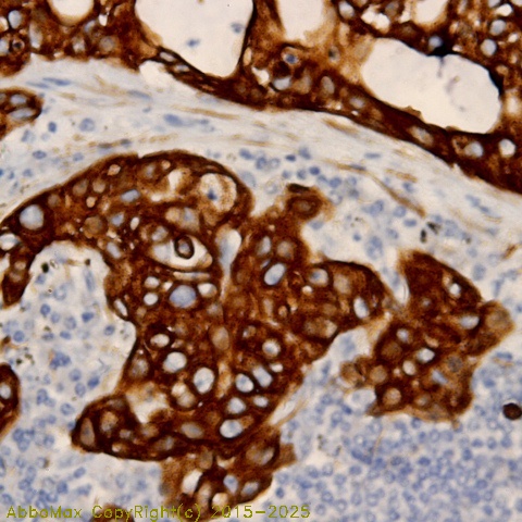 "Cytokeratin 14 is a member of the keratin family, the most diverse group of intermediate filaments. CK14 belongs to a type I keratin. It is usually found as a heterotetramer with two keratin 5 molecules, a type II keratin. Together they form the cytoskeleton of epithelial cells. Mutations in the genes for these keratins are associated with epidermolysis bullosa simplex."