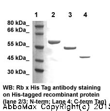 "Many oligo peptides or tag proteins are widely used as a tag to monitor the protein expression, such as FLAG, c-Myc, E-tag, His-tag, GFP, GST, and etc. These tag antibodies provide tools to localize gene products in a variety of cell types to study the topology of proteins, and protein complexes, and to identify associated proteins. In addition, this antibody allows characterizing of newly identified, lowing abundance or poorly immunogenic proteins when protein specific antibodies are not available. The His tag antibody is generated according to the 6 amino acid epitope tag (HHHHHH), and it can be used to detect the His tagged fusion proteins. "