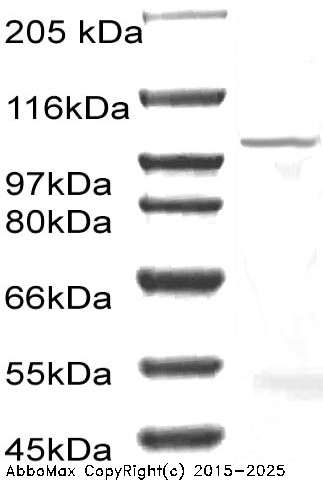 "CD156b is a type I transmembrane glycoprotein belong to the ADAM (a disintegrin and metalloprotease domain) family. This single-pass type-1 824 aa transmembrane glycoprotein contains a signal sequence, an extracellular domain (pro-domain, catalytic domain, disintegrin-cysteine-rich domain, glycosylation sites), transmembrane and cytoplasmic domain. CD156b is a multi-domain protein that includes a Zn-dependent protease domain in the extracellular portion. It releases the soluble forms of TNF and TGFa from cells. CD156b is identified by its ability to cleave the transmembrane form of TNF between Ala-76 and Val-77 to generate the soluble form. CD156b is therefore a prospective therapeutic target in human cancer. CD156b is expressed on T cells, neutrophils, endothelial cells, monocytes, dendritic cells, macrophages, polymorphonuclear leukocytes and myocytes. And non-lymphoid tissues including heart, placenta, brain, muscle.  "