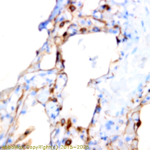 "Podocalyxin, a sialoglycoprotein, is a member of the CD34 family of transmembrane sialomucins. The protein was originally identified as an important component of glomerular podocytes. Podocytes are highly differentiated epithelial cells with interdigitating foot processes covering the outer aspect of the glomerular basement membrane. Other biological activities of the encoded protein include: binding in a membrane protein complex with Na+/H+ exchanger regulatory factor to intracellular cytoskeletal elements, playing a role in hematopoetic cell differentiation, and being expressed in vascular endothelium cells and binding to L-selectin;. Podocalyxin expression in the hematopoietic system correlates with cell migration and the seeding of new hematopoietic tissues. In addition, it is abnormally expressed in subsets of breast, prostate, liver, pancreatic, and kidney cancer as well as leukemia. It is often associated with the most aggressive cases, and it is likely involved in metastasis. Podocalyxin is required for maintaining blood–brain barrier function during acute inflammation.
