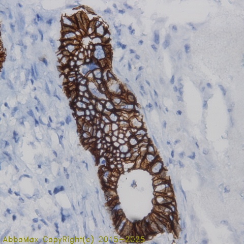 "Keratins are expressed predominantly in epithelial cells and as members of the intermediate filament family of proteins, they are part of the largest family of cytoskeletal proteins. Cytokeratin 19 is a member of the keratin family, a type I keratin. It is the smallest keratin protein and shows a diverse expression pattern ranging from developing embryo, mature striated muscle, complex and simple epithelia, to epithelial stem cells. It is expressed in mammary gland ductal and secretory cells, gastrointestinal tract, hair follicules, muscle fibers, etc. Keratins are widely used as diagnostic markers to detect tumors in both primary and distal sites and to determine tumors’ tissue of origin in order to aid in treatment strategies. K19 has been particularly useful because it is among the most sensitive diagnostic markers across a broad range of cancer types. Expression of cytokeratin 19 has been demonstrated in various malignancies, including esophageal cancer, breast cancer, and pancreatic cancer."