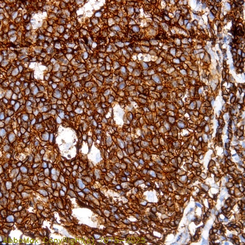 "The leukocyte common antigen (LCA/CD45) consists of a family of heavily glycosylated glycoproteins of apparent MW 180- 240kD). It is a transmembrane protein-tyrosine-phosphatase. The LCA family includes a group of proteins present on all mature B and T lymphocytes, thymocytes, macrophages, spleen, lymph node, chronic lymphatic leukemia cells, bone marrow, thymus and granulocytes. It is absent in brain, kidney, liver, heart, erythrocytes, platelets and normal serum. The leukocyte common antigen is an abundant lymphocyte surface antigen that has been reported to be involved in signaling through the T cell antigen receptor. CD45 may function in the regulation of L-selectin (CD62L), in regulation of B-lymphocyte negative and positive selection and in T-cell activation. It stains lymphocytes, monocytes, eosinophils and also neoplastic cells of lymphoid origin. Neoplastic B cells and T cells in leukemia and in non-Hodgkin's lymphomas stain positive. This antibody may be useful in the evaluation of malignant lymphoma and nonlymphoid tumors. Neoplastic B and T cells in leukemia and in non-Hodgkin's lymphoma stain positive and hence can be distinguished from sarcomas and carcinomas."