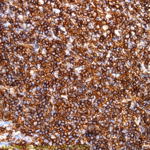 "The leukocyte common antigen (LCA/CD45) consists of a family of heavily glycosylated glycoproteins of apparent MW 180- 240kD). It is a transmembrane protein-tyrosine-phosphatase. The LCA family includes a group of proteins present on all mature B and T lymphocytes, thymocytes, macrophages, spleen, lymph node, chronic lymphatic leukemia cells, bone marrow, thymus and granulocytes. It is absent in brain, kidney, liver, heart, erythrocytes, platelets and normal serum. The leukocyte common antigen is an abundant lymphocyte surface antigen that has been reported to be involved in signaling through the T cell antigen receptor. CD45 may function in the regulation of L-selectin (CD62L), in regulation of B-lymphocyte negative and positive selection and in T-cell activation. It stains lymphocytes, monocytes, eosinophils and also neoplastic cells of lymphoid origin. Neoplastic B cells and T cells in leukemia and in non-Hodgkin's lymphomas stain positive. This antibody may be useful in the evaluation of malignant lymphoma and nonlymphoid tumors. Neoplastic B and T cells in leukemia and in non-Hodgkin's lymphoma stain positive and hence can be distinguished from sarcomas and carcinomas."