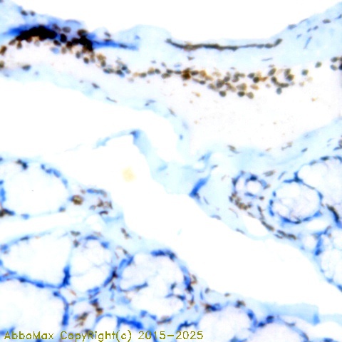 "The protein CD134, tumor necrosis factor receptor superfamily, member 4 (TNFRSF4) is a member of the TNF-receptor superfamily. This receptor has been shown to activate NF-kappaB through its interaction with adaptor proteins TRAF2 and TRAF5. Knockout studies in mice suggested that this receptor promotes the expression of apoptosis inhibitors BCL2 and BCL2lL1/BCL2-XL, and thus suppresses apoptosis. The knockout studies also suggested the roles of this receptor in CD4+ T cell response, as well as in T cell-dependent B cell proliferation and differentiation. Studies show that high OX40 (CD134) expression in the tumor immune infiltrate is a favorable prognostic factor of overall survival in non-small cell lung cancer."