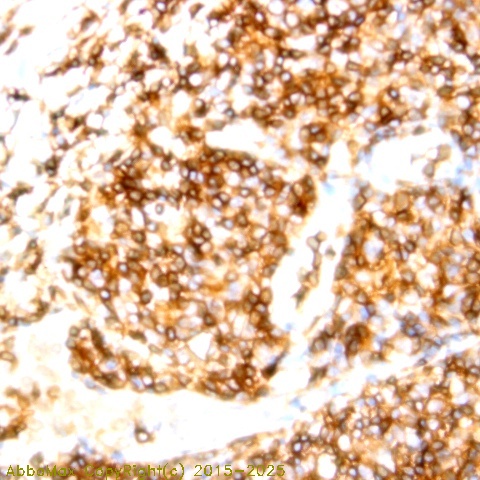 "SSEA-1/CD15 is a stage-specific embryonic antigen 1 which presents on myelomonocytic cells and Lacto-Nfucopentose III (also known as hapten X). It is present on greater than 90% of granulocytes including neutrophils and eosinophils, and to a lesser degree, on monocytes. CD15 is expressed in Reed-Sternberg cells of Hodgkin’s disease (of the nodular sclerosis, mixed cellularity and lymphocyte-depleted subtypes). This antibody recognizes myeloid cells, mainly granulocytes but not on B cells, T cells, monocytes, erythrocytes or platelets. Positive staining for CD15 combined with a negative reaction for lymphocytic markers may provide support for Hodgkin’s disease. Fifty percent or more of adenocarcinomas have been described as showing significant cytoplasmic positivity for CD15. It does not detect most mesotheliomas"