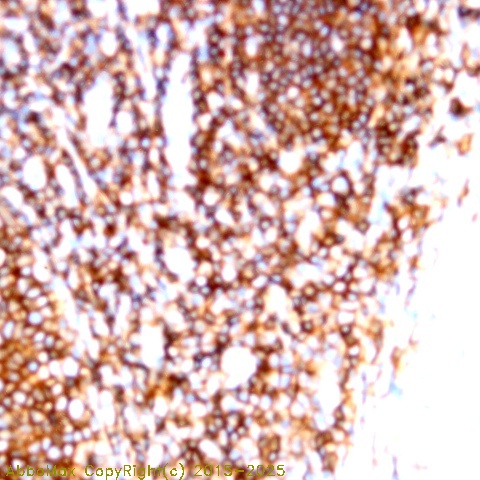 "CD99 is a cell surface glycoprotein involved in leukocyte migration. It is type I single chain transmembrane protein devoid of N-linked glycosylation sites encoded by the pseudoautosomal gene MIC2. CD99 has an apparent molecular weight of 32 kD and is widely expressed on a variety of tissues. CD99 is highly expressed on thymocytes, T cells, and T cell leukemias and lymphomas. However, it is absent on some B cell lines, fetal B cells, eosinophils, granulocytes and the NK-cell line YT. CD99 is involved in spontaneous rosette formation with erythrocytes and may also be involved in other T-cell and hematopoietic cell adhesion pathways. CD99 has been reported to activate a caspase-independent death pathway in T cells under some conditions. CD99 interacts with a number of proteins including ferritin heavy chain 1, karyopherin beta 1, TRIP13, cyclophilin A, annexin II, and ubiquitin-conjugating enzyme E2H"