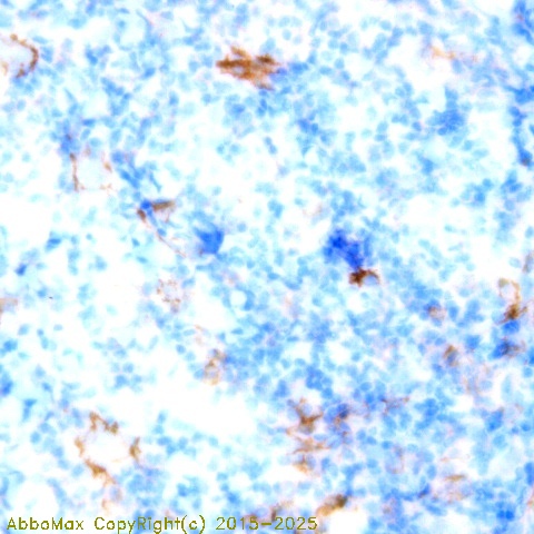 "CD13 is a 150-170 kD type II transmembrane glycoprotein also known as aminopeptidase N, APN, and gp150. It is located in the small-intestinal and renal microvillar membrane, and also in other plasma membranes. In the small intestine aminopeptidase N plays a role in the final digestion of peptides generated from hydrolysis of proteins by gastric and pancreatic proteases. Its function in proximal tubular epithelial cells and other cell types is less clear. The large extracellular carboxyterminal domain contains a pentapeptide consensus sequence characteristic of members of the zinc-binding metalloproteinase superfamily. CD13 is expressed as a homodimer on granulocytes, myeloid progenitors, endothelial cells, epithelial cells and subset of granular lymphoid cells. It is not expressed on platelets or erythrocytes. CD13 is thought to be involved in the metabolism of many regulatory peptides and functions in antigen processing and the cleavage of chemokines such as MIP-1. CD13 serves as the cellular receptor for Coronavirus."