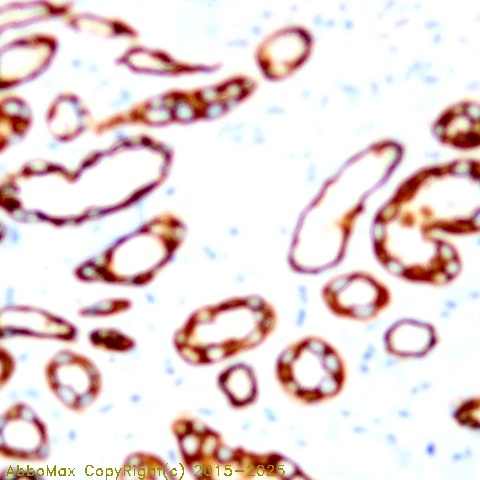 "Keratins are intermediate filament–forming proteins that provide mechanical support and fulfill a variety of additional functions in epithelial cells. Keratinocytes, the main cells of the epidermis, play a special role in sensing epidermal barrier and regulating immune homeostasis. Its functions mainly depend on structural proteins including keratins. Cytokeratins are forms of keratins found in the intracytoplasmic cytoskeleton of epithelial tissue. In the cytoplasm, the keratin filaments conform a complex network which extends from the surface of the nucleus to the cell membrane. Expression of cytokeratins within epithelial cells is largely specific to particular organs or tissues. Cytokeratin HMW stains high molecular weight cytokeratins in squamous, ductal and transitional epithelium and related tumors."