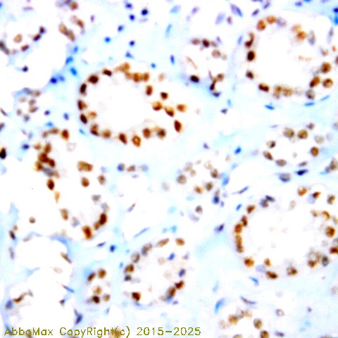 "Nucleophosmin (NPM) is a member of the nucleophosmin/nucleoplasmin family that shuttles between the nucleus and cytoplasm. This protein regulates the stability and transcriptional activity of p53 and acts as a molecular chaperone. It preferentially binds to denatured proteins and has been shown to stimulate DNA polymerase activity and control the duplication of centrosomes. The chaperone activity of nucleophosmin is regulated by protein kinase CK2 and promotes the release of denatured substrates from nucleophosmin. The phosphorylation of NPM is associated in its interaction with nucleolar proteins including nucleolin, protein P120, HIV-1 Rev protein, and hepatitis delta antigens."
