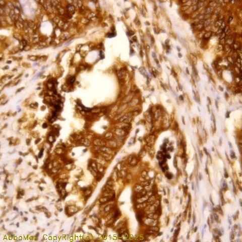"ALK is a receptor tyrosine kinase, which belongs to the insulin receptor superfamily. This gene has been found to be rearranged, mutated, or amplified in a series of tumors including anaplastic large cell lymphomas, neuroblastoma, and non-small cell lung cancer. This antibody recognizes a human p80 protein, identified as a hybrid of the anaplastic lymphoma kinase (ALK) gene and the nucleophosmin (NPM) gene resulting from the t(2;5)(p23;q35) translocation found in a third of large cell lymphomas. This antibody can be used to detect p80 in these lymphomas and may also be used to detect a recently described subtype of large B cell lymphoma, which expresses the full-length ALK protein."