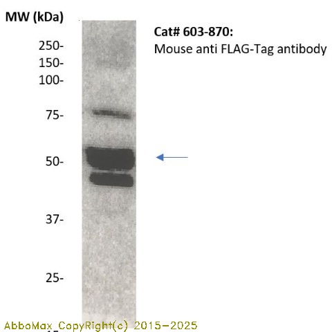 "FLAG-tag is a polypeptide that has the sequence motif DYKDDDDK. It is one of the most specific tags. FLAG-tag is an artificial antigen to which specific, high affinity monoclonal antibodies have been developed. Many oligo peptides or tag proteins are widely used as a tag to monitor the protein expression, such as FLAG, c-Myc, E-tag, His-tag, GFP, GST, and etc. These tag antibodies provide tools to localize gene products in a variety of cell types to study the topology of proteins, and protein complexes, and to identify associated proteins. In addition, this antibody allows characterizing of newly identified, lowing abundance or poorly immunogenic proteins when protein specific antibodies are not available. The FLAG antibody can be used to detect the FLAG tagged fusion proteins. It can be used in many different assays to simplify the labeling and detection of proteins, including antibodies. FLAG-Tag can be also utilized in affinity chromatography for protein purification."