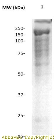 "This antibody recognizes ~240 kDa of human neurofibromin protein at the phosphorylation site of Ser 2741. It does not cross react to non-phospho NF1.This antibody also reacts with mouse, rat, chicken, bovine and dog. The other species are not tested."