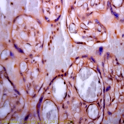 "Transforming growth factor β isoforms (TGF-β1, 2, 3) play vital roles in regulating cellular growth and differentiation, and they signal through a highly restricted subset of receptors known as TGF-β type I receptor (TβR-I) and TGF-β type II receptor (TβR-II). Expression of T beta R-I is more ubiquitous than that of T beta R-II. There was no staining of T beta R-II in the central nervous system, while intense T beta R-I staining was found specifically in nervous tissues. Expression of T beta R-I and T beta R-II was mostly coincident with that of their ligands, suggesting that TGF-beta s act as multiple mediators during organogenesis. TGF-β binds with high affinity to its receptor, a transmembrane protein with a cytoplasmic serine/threonine kinase domain, to form a dynamic dimer with phosphorylation in the cytoplasmic Ser/Thr residuals which cause its kinase activity and association with another TGF beta-binding protein, the type I receptor, to signal growth inhibition and early gene responses. "